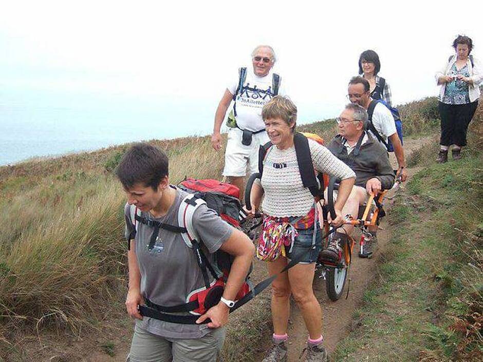 Avant de partir pour cette randonnée vers Saint-Jacques-de-Compostelle, le groupe s'est entraîné sur les chemins de la pointe du Groin en compagnie des membres de l'association JoAilettes 35.